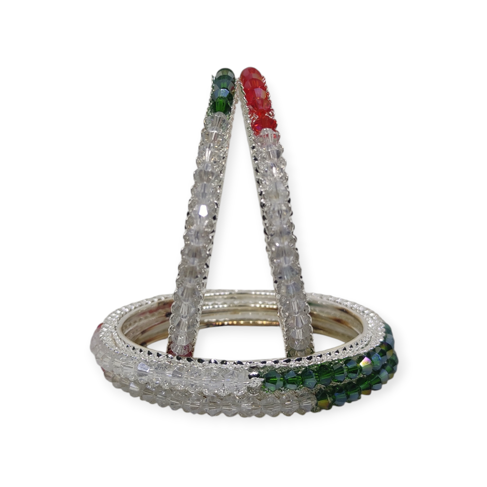 Beads Stud Metal Bangle/Kangan, Set of 4 Pieces, Silver Tone, Light Multi Color