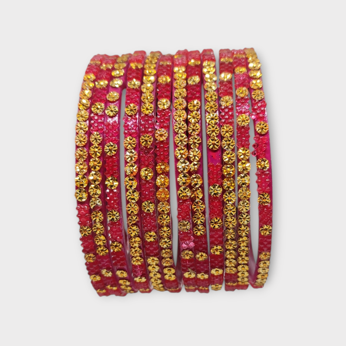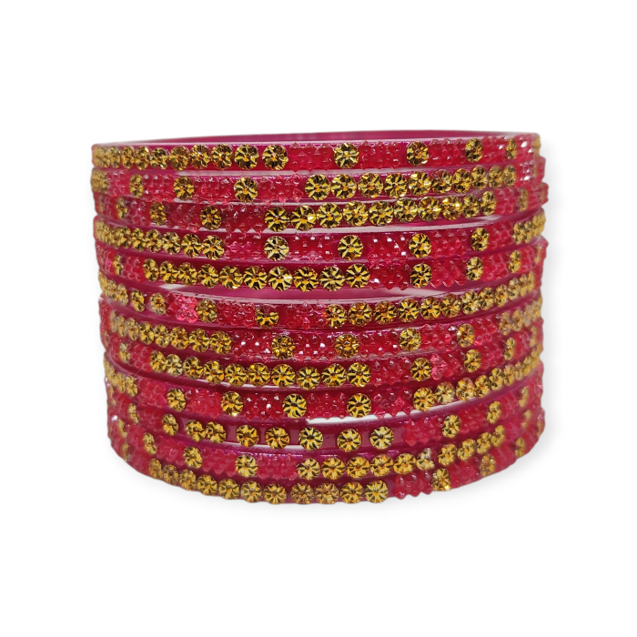 Fancy Beads Stud Glass Bangles, Pack of 12 Pieces, Strawberry Color