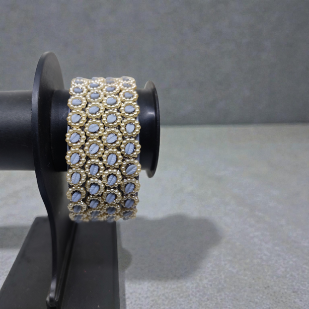 Fancy Beads Stud Glass Kangan, Pack of 4 Pieces, Grey Color