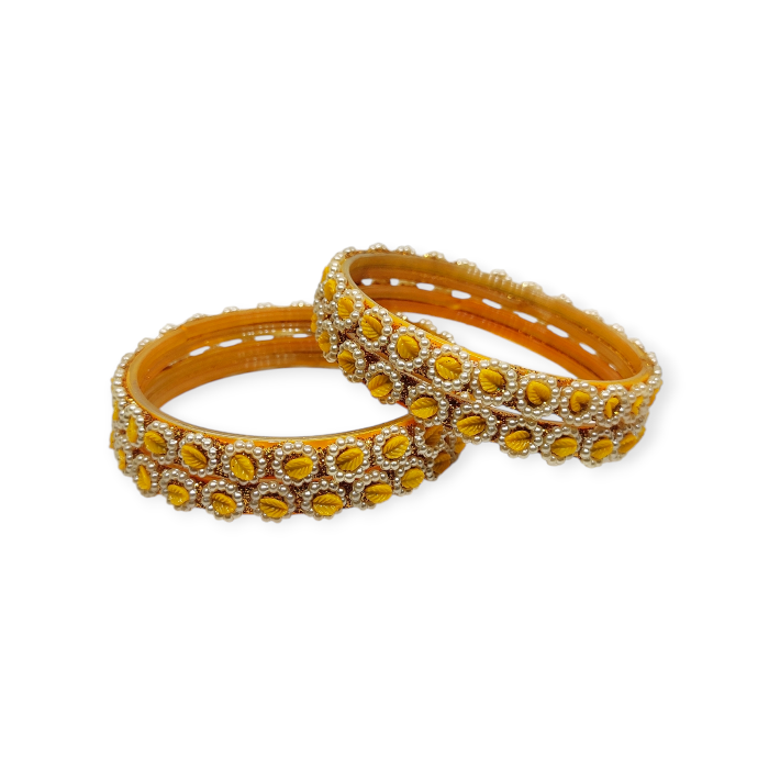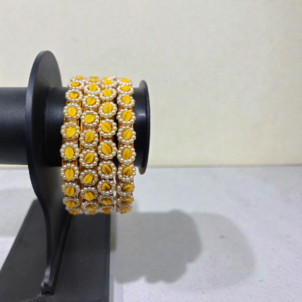 Fancy Beads Stud Glass Kangan, Pack of 4 Pieces, Yellow Color