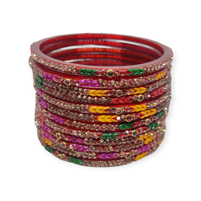 - Glass Bangles are Purely a Handicraft Product. Coloring, Sizing, fixing of stone or other decorative element is done manually. So there would be likely less symmetry. Kindly don’t consider it as damaged or defective product.