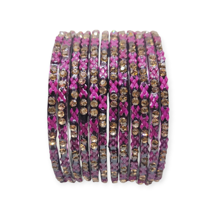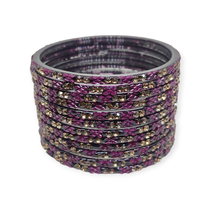 Fancy Stone Stud Glass Bangles, Pack of 12 Pieces, Wine Color
