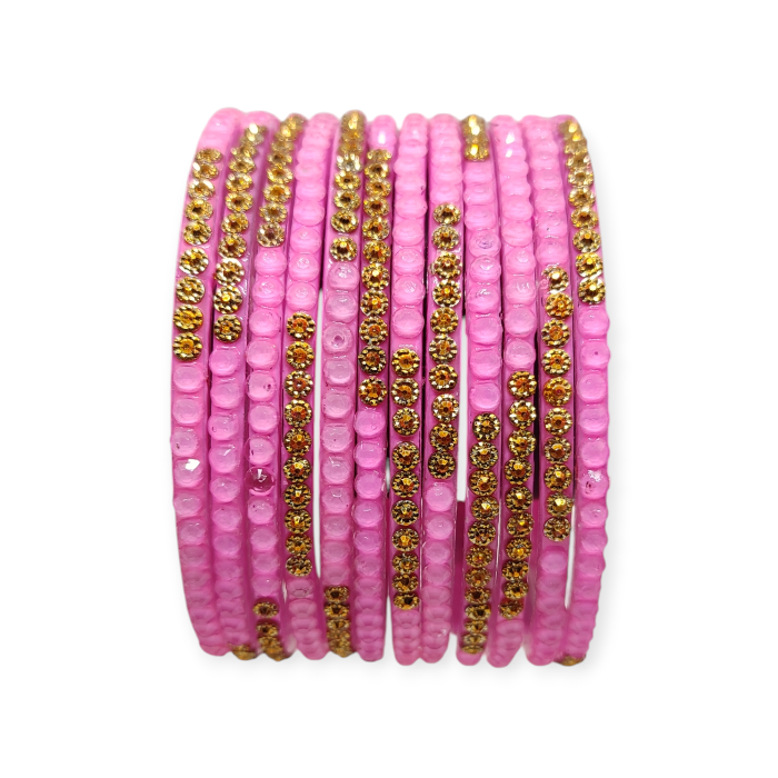 Jelly Stone Stud Fancy Glass Bangles, Pack of 12 Pieces, Pink Color