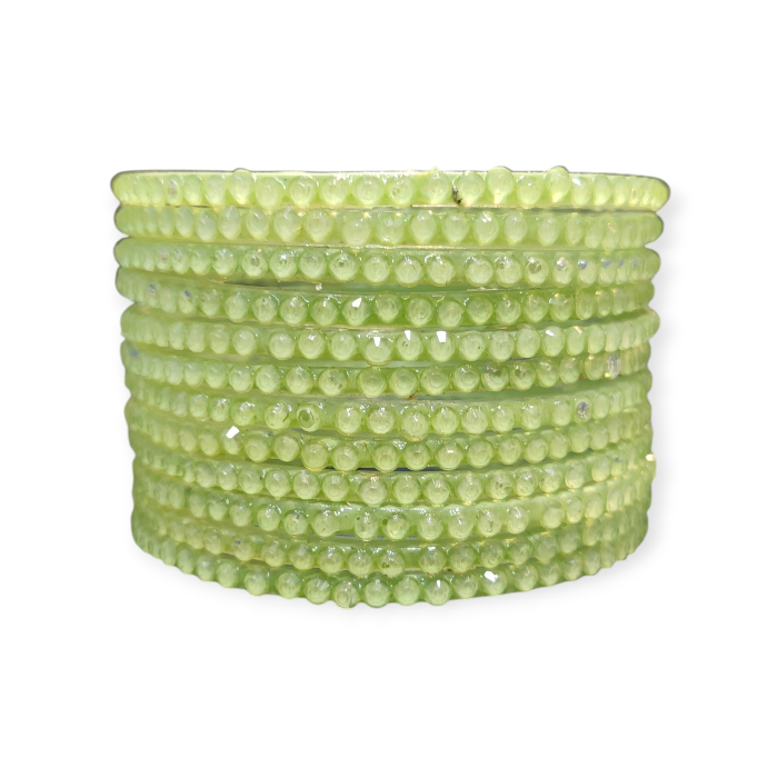 Jelly Stone Stud Fancy Glass Bangles, Pack of 12 Pieces, Pista Color