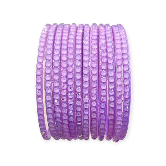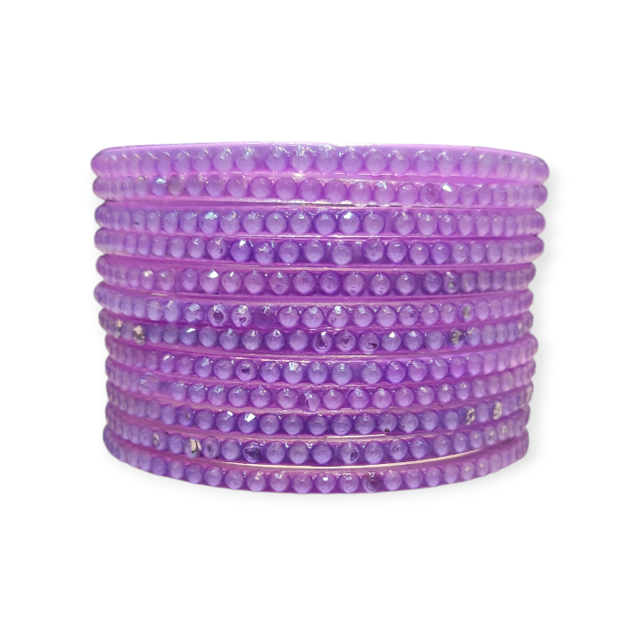Jelly Stone Stud Fancy Glass Bangles, Pack of 12 Pieces, Purple Color