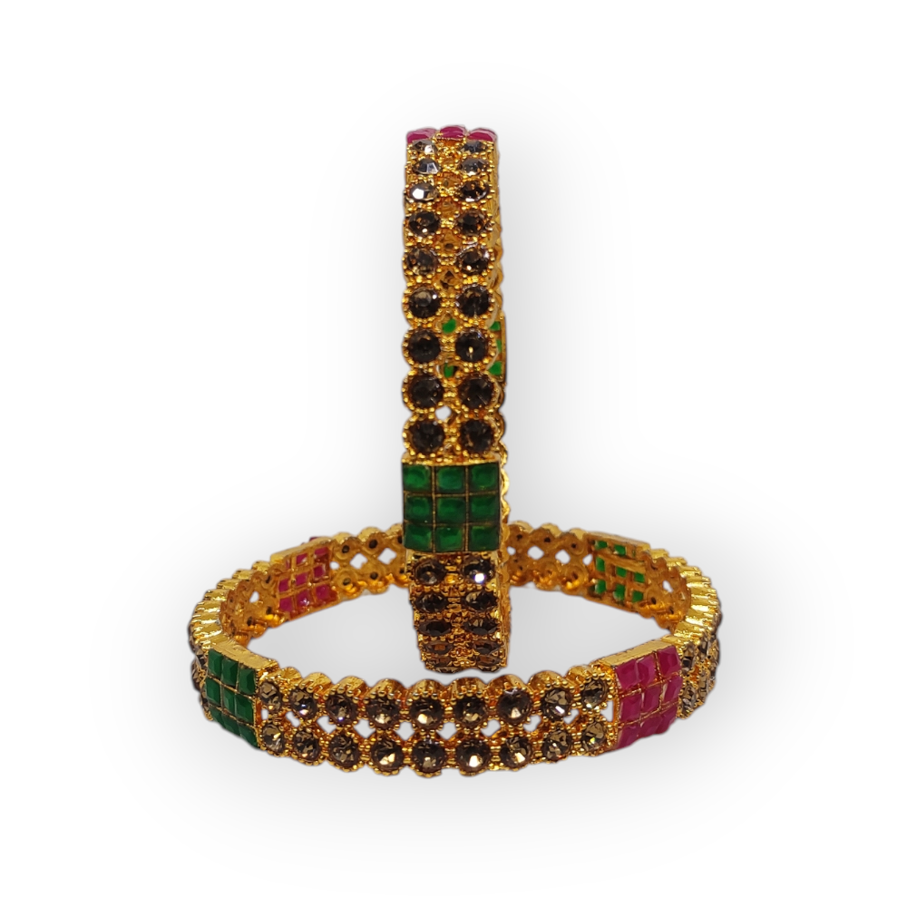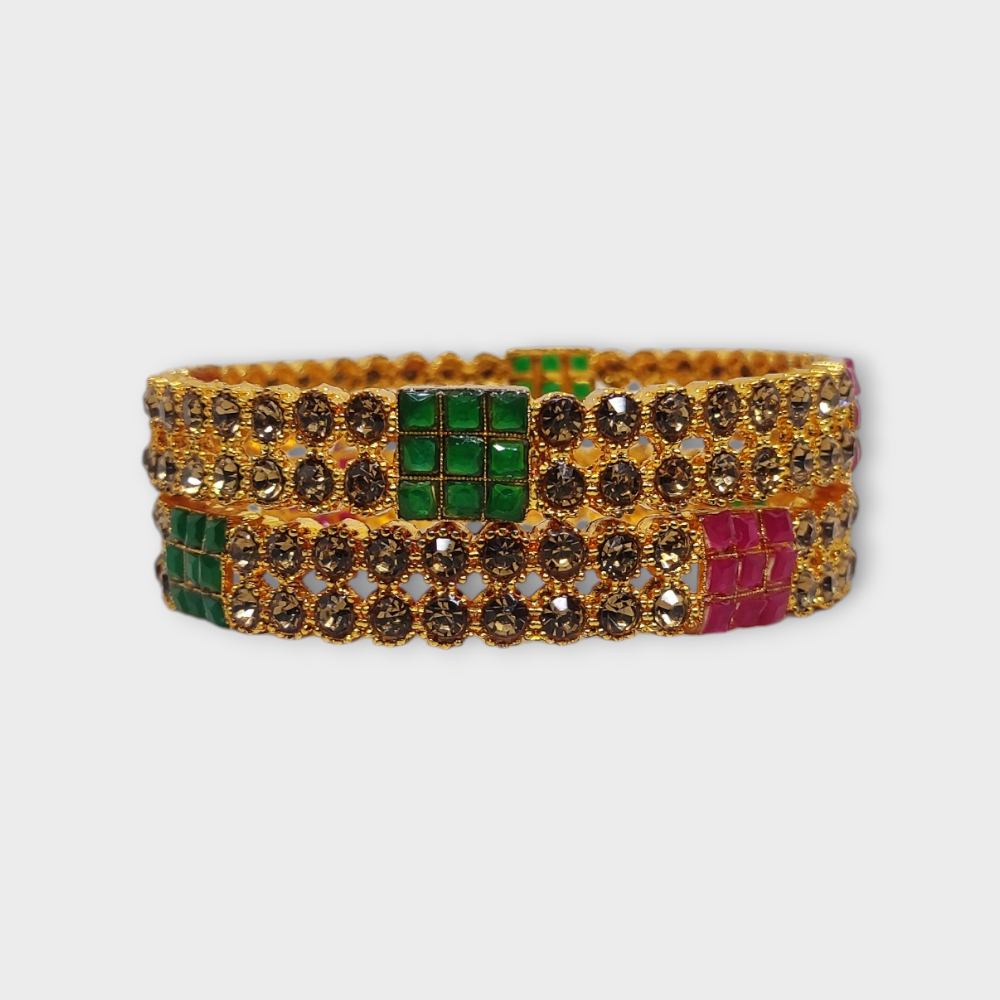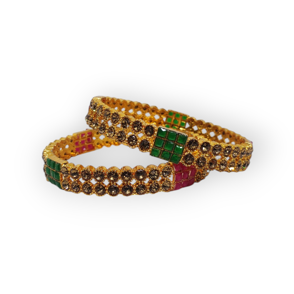 Mazak Metal Bangle/Kangan, Pack of 1 Pair (2 Pieces), Gold Tone, Multi Color