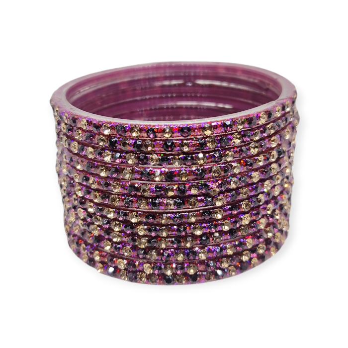 Fancy Stone Stud Glass Bangles, Pack of 12 Pieces, Wine Color