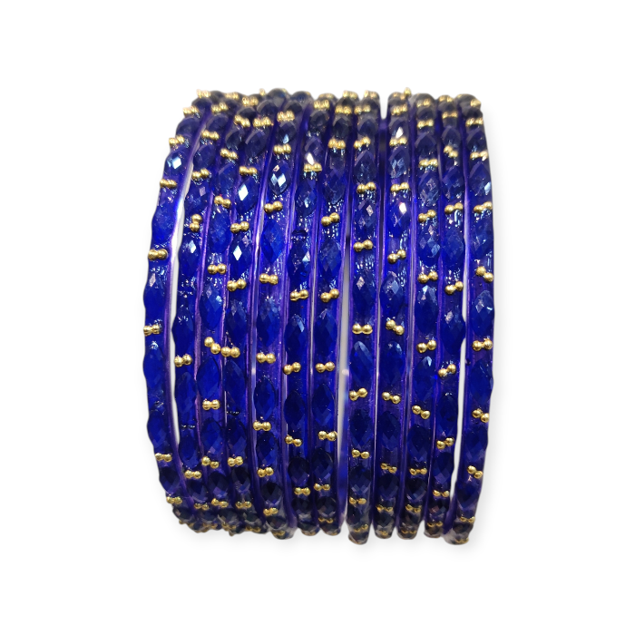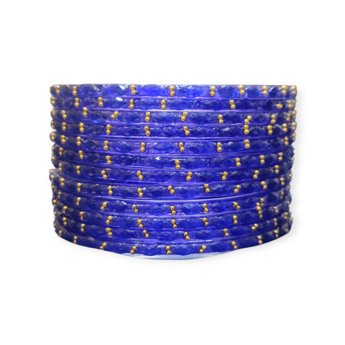 Fancy Stone Stud Raindrop Glass Bangles, Pack of 12 Pieces, Blue Color