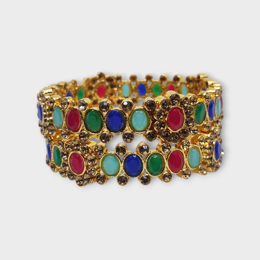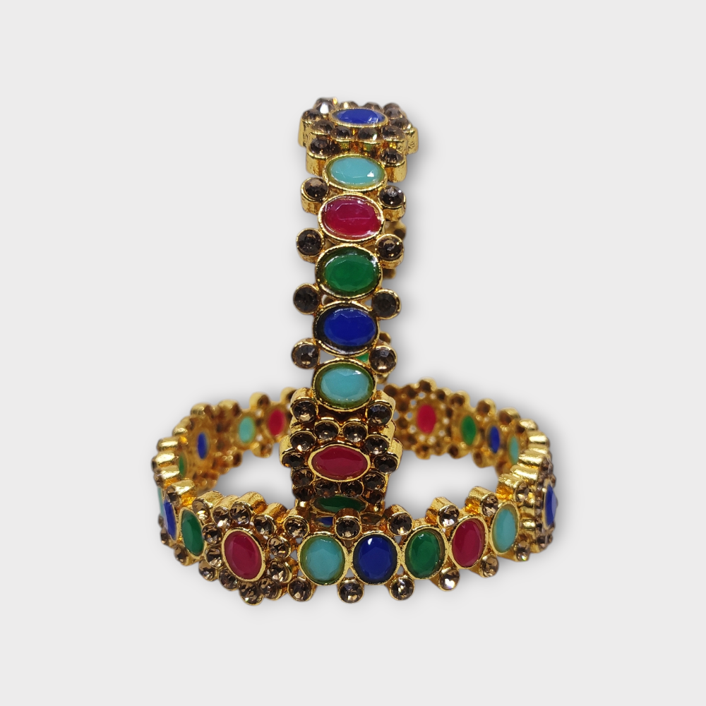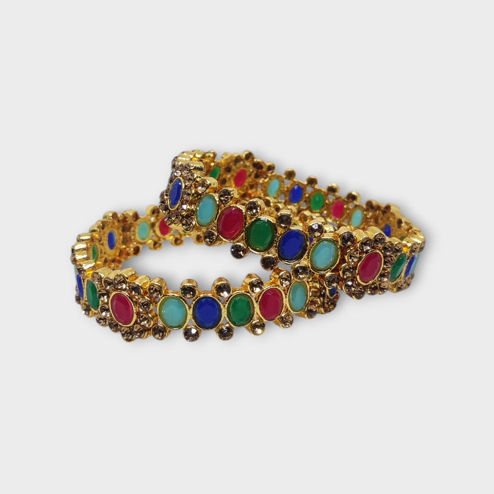 Mazak Metal Bangle/Kangan, Pack of 1 Pair (2 Pieces), Gold Tone, Multi Color