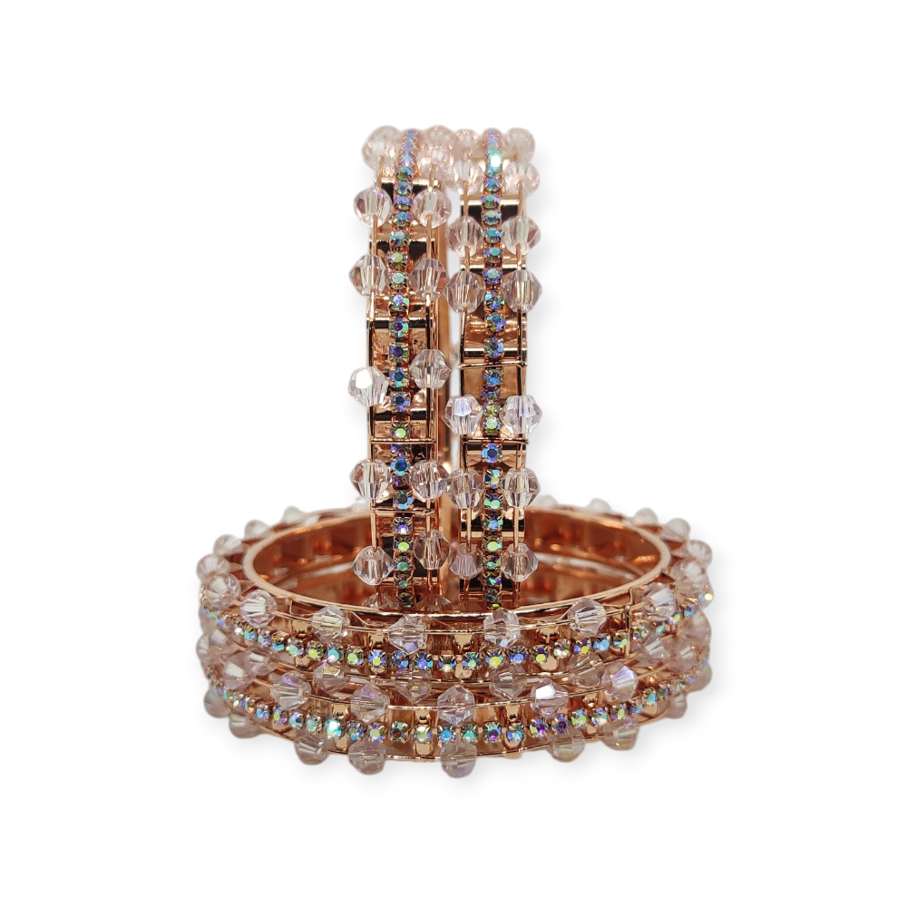Stone and Crystal Stud Metal Bangles, Set of 4 Pieces, Rose Gold Color