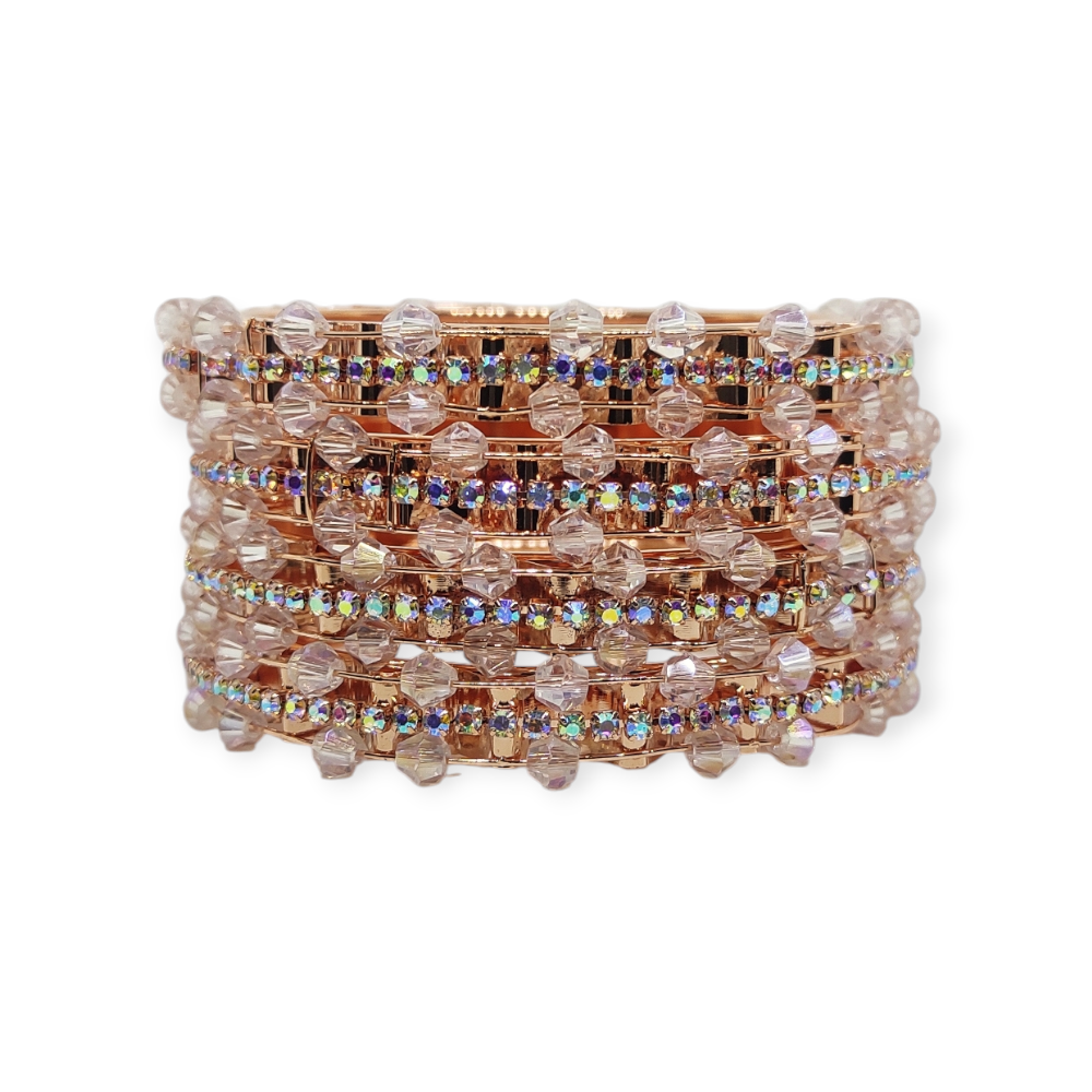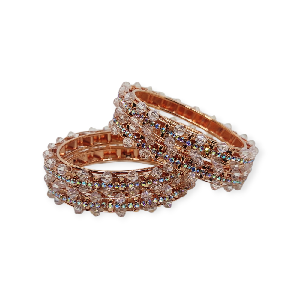 Stone and Crystal Stud Metal Bangles, Set of 4 Pieces, Rose Gold Color